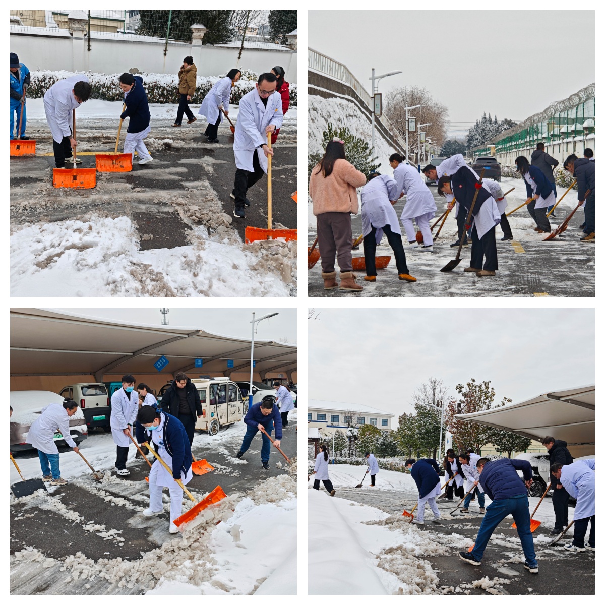 经过数小时的连续奋战,院区内主要道路和区域的积雪暗冰被彻底清除,显露出整洁、安全的路面,为冒雪前来就诊的患者,特别是老年患者、行动不便者提供了极大的便利与安全保障。